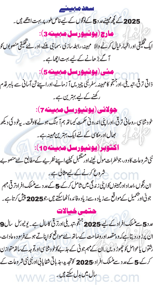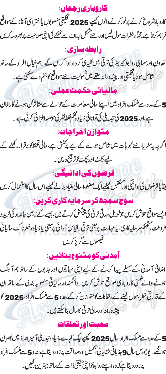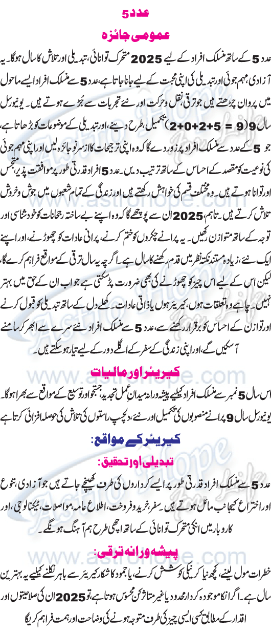 Numerology Year 2025 Urdu Horoscope