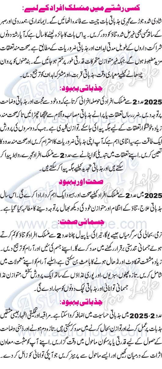 Numerology Year 2025 Urdu Horoscope