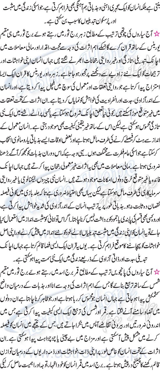 Urdu Astrology Daily Aaspect