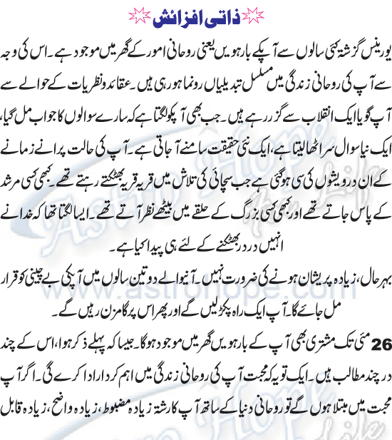 Urdu Horoscope  -  Daily Urdu Horoscope  -  Weekly Urdu Horoscope  -  Monthly Urdu Horoscope  -  Yearly Urdu Horoscope  -  Numerology in Urdu